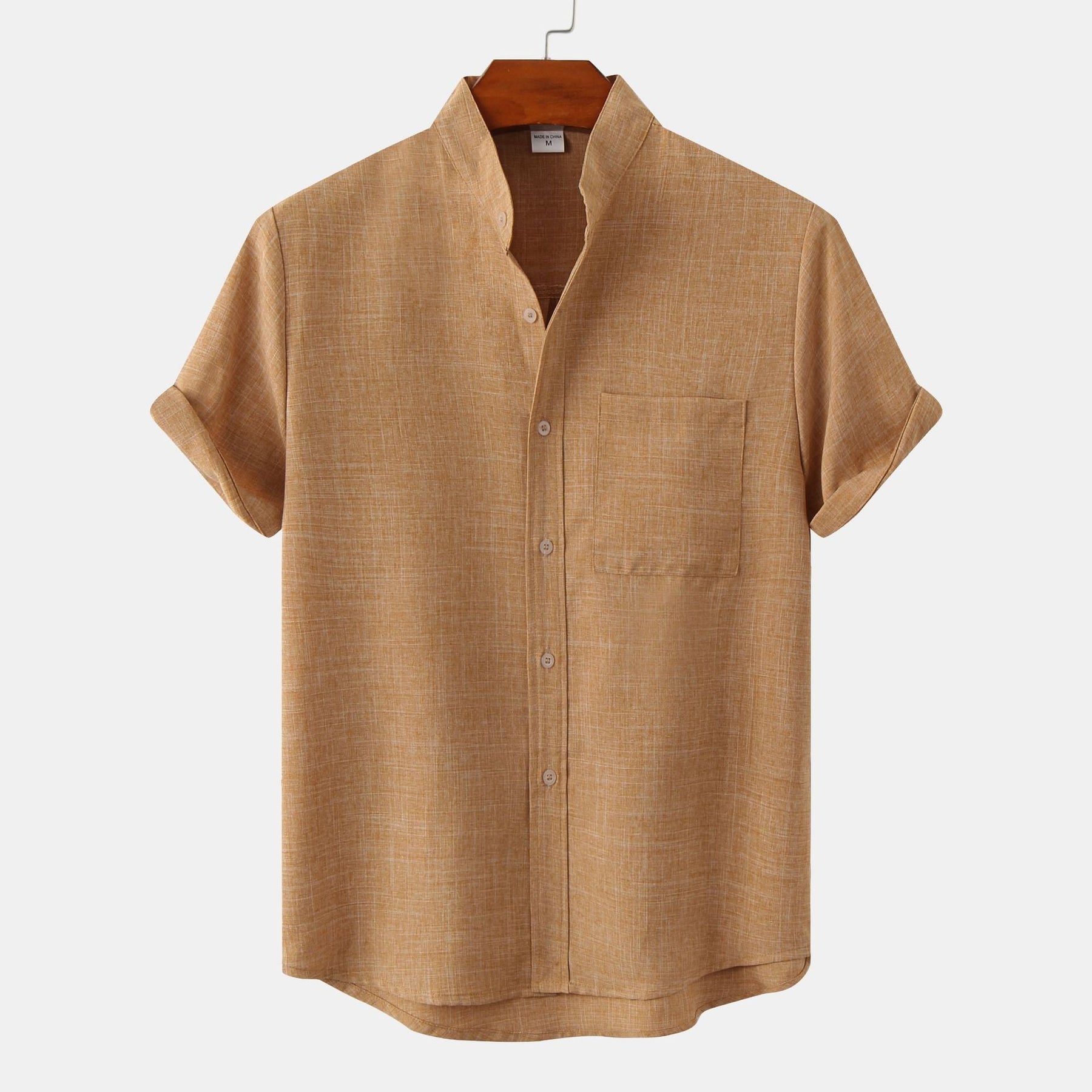 This polished mandarin-collar shirt combines refined simplicity with breathable comfort, making it perfect for days when ease and sophistication are key. The lightweight fabric ensures cool wear, while the rolled cuffs and clean lines add subtle structure. Whether paired with tailored trousers or relaxed denim, it delivers a versatile style that transitions from casual to smart with ease. A must-have for the modern wardrobe.
